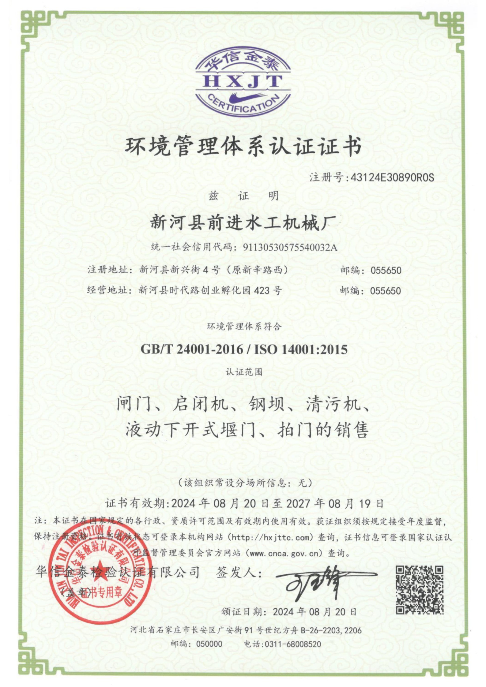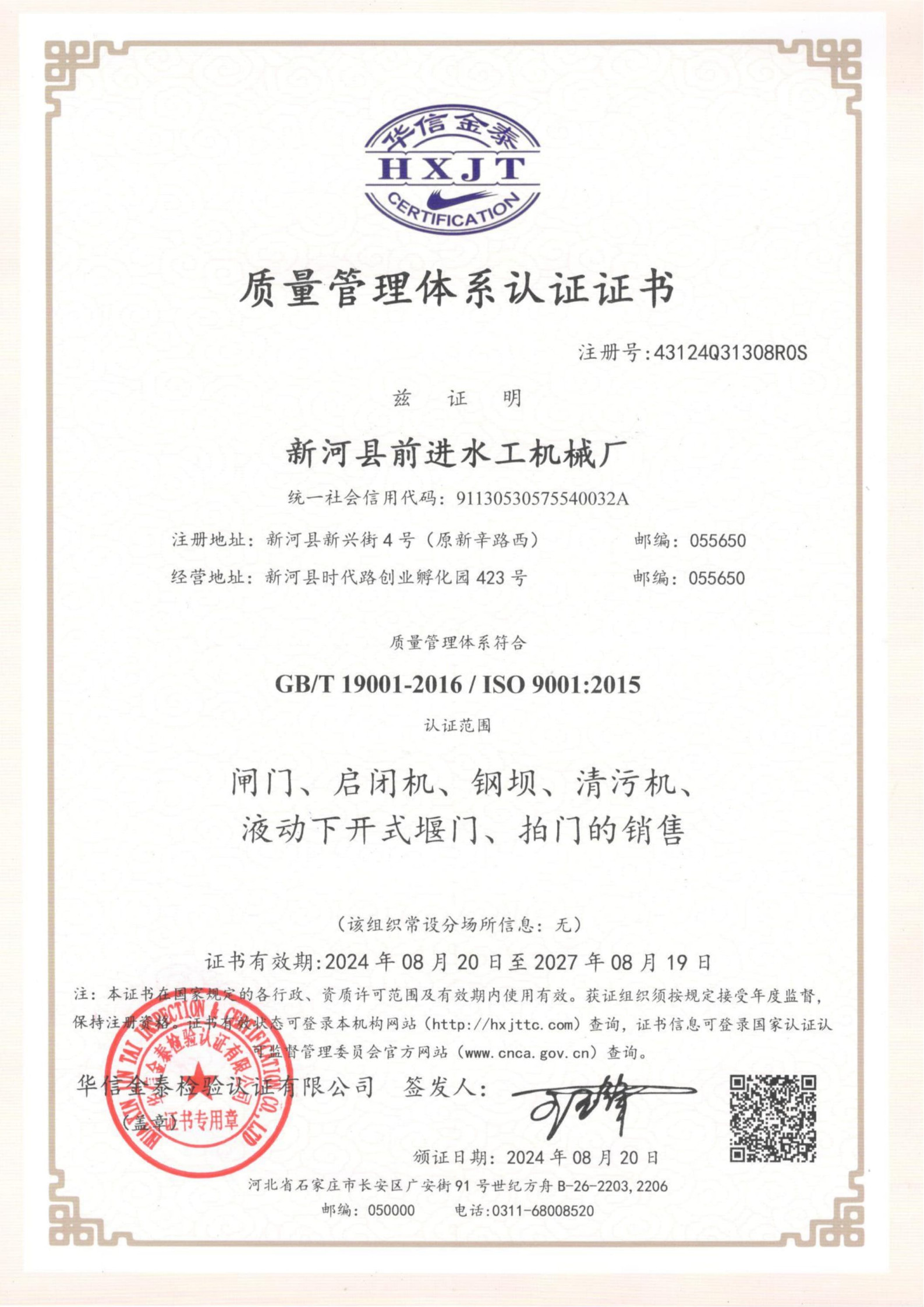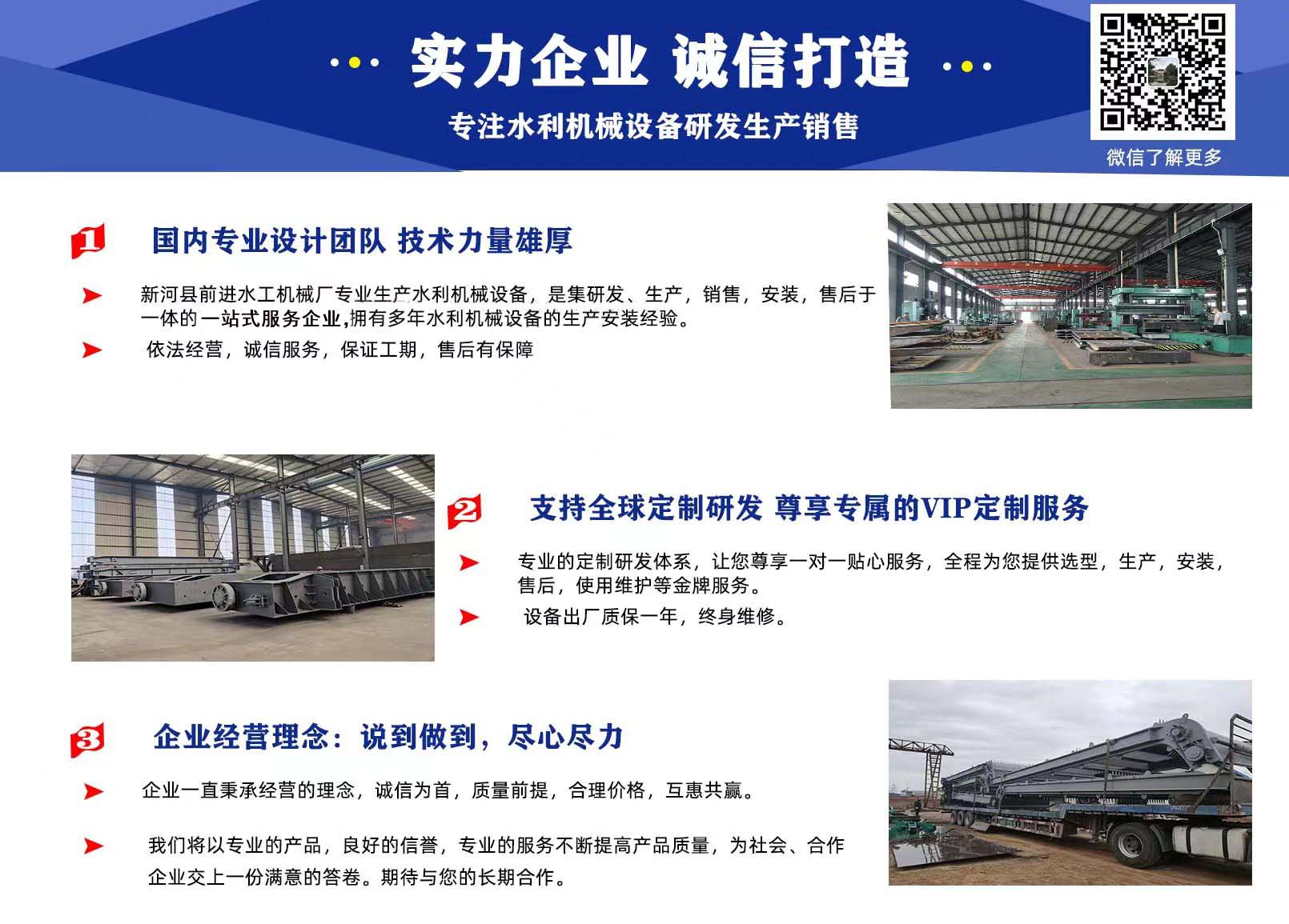 新河縣前進(jìn)水工機(jī)械廠是一家專門從事水利工程設(shè)備研發(fā)生產(chǎn)的廠家,現(xiàn)有員工228人,各類高、中級專業(yè)工程技術(shù)人員近30人,技術(shù)生產(chǎn)工人180多人。公司占地面積14674平方米。公司擁有車、鉗、刨、銑、冷作、鈑金、鑄造等,工種齊全,加工能力和技術(shù)力量雄厚,并具備理化測試手段與儀器設(shè)備。前進(jìn)水工專注景觀閘門,鋼壩,合頁壩,液壓升降壩,液壓閘門,臥倒門,一字門,人字門,液壓啟閉機(jī),卷揚(yáng)啟閉機(jī),螺桿啟閉機(jī),清污機(jī),除污機(jī),閘門,拍門等設(shè)備的研發(fā)與生產(chǎn),是新河水利工程產(chǎn)品行業(yè)的領(lǐng)跑者,不僅在同行業(yè)群中揭起了一次又一次的技術(shù)革新,更為水利工程企業(yè)提供了更高更大的選擇平臺(tái)。